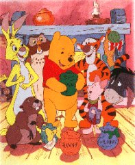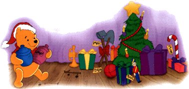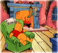 | Pooh's hung his stocking, and is now fast asleep! He is dreaming of Christmas Day! His mind is filled with hunny pots, That he is hoping fills Santa's sleigh! |