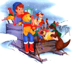 | Pooh & the gang go sledding along, Filling the air with a Christmas song! |