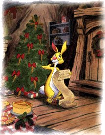 | Rabbit is checking his list, And checking it twice! To make certain his friends, Receive everything nice! |