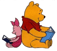"Think! Think! Think! What does this say?" Pooh might find it easier if the book was turned the right way! |